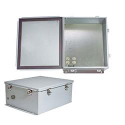 The NBS141206-100 is designed to provide protection, indoors and outdoors, against dust, dirt, oil, and water for items such as pneumatic or hydraulic instruments, transformers, and junction wiring. These enclosures are for use in areas such as shop floors, process controls, agriculture operations, food and beverage operations where they are subject to frequent high-pressure hosing, dirt, grime and generally wet conditions. The NBS141206-100 enclosure is made from 14ga. hot rolled steel. All seams are continuously welded and each enclosure comes with four 10-32 weld nuts. Grounding studs are provided on the inside of the box and door, and wall mounting back brackets are welded on the top and bottom outside. The enclosure door is sealed with a one piece neoprene gasket and is secured to the enclosure with a continuous stainless steel piano hinge on one side and stainless steel door clamping hardware on three sides. All enclosures are phosphatized and finished inside and out with ANSI/ASA 61 grey polyester powder coating. Included with the enclosure is a 1/2" cable conduit connector and grounding lug. The aluminum mounting plate has provisions to mount various equipment types such as WLAN devices. With the optional HGX-AMOUNT02 bracket a wide array of L-com PoE products and power supplies can be mounted as well. Two of these brackets can be mounted side by side. Also available is the HGX-NMOUNT03 Universal Mounting Shelf that can be attached to the mounting plate and can accommodate additional equipment to be placed in the enclosure. The plate features four standard surge protected 120 VAC outlets and a terminal strip to supply power to internal equipment. The NBS141206-100 is built to the requirements of NEMA/EEMAC type 12 specifications for use with industrial control equipment in ordinary locations, type 13 for an oil and dust tight enclosure, and type 4,4X as a water tight corrosion resistant enclosure. The NBS141206 is available with CSA and UL 508 certifications as an option. For additional information and complete specifications, click on the data sheet link in the Downloads section. 特征
